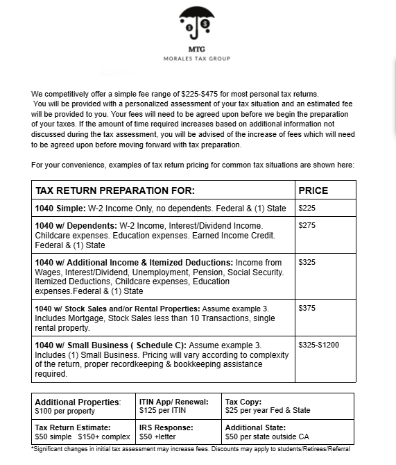 Individual Tax Preparation Pricing